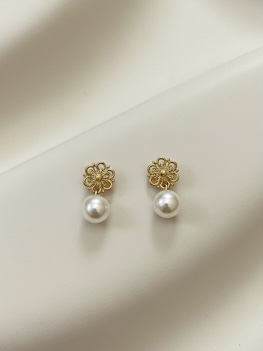 گوشواره میخی دخترانه - طرح گل مرواریدی