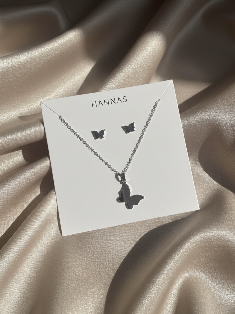نیم ست استیل دخترانه - طرح پروانه نقره ای - رنگ ثابت
