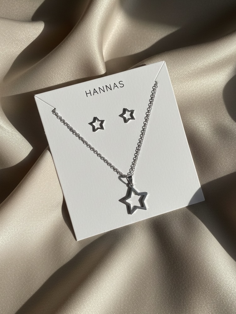 نیم ست استیل دخترانه - طرح ستاره نقرهای - رنگ ثابت