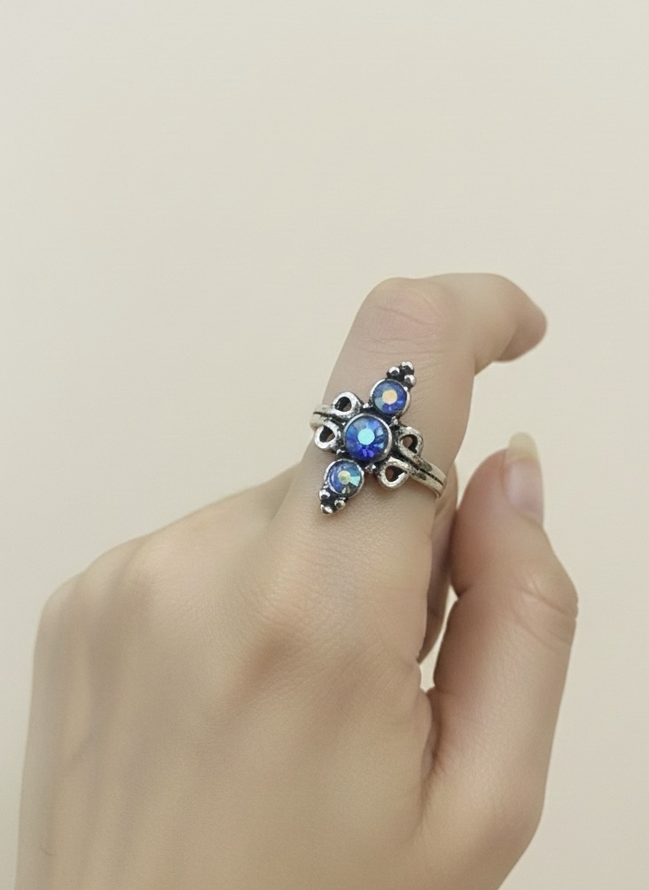 انگشتر دخترانه نگیندار طرح ۰۳ – نگین آبی براق و فانتزی