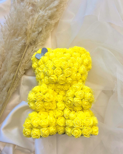 خرس گل رز زرد لیمویی – تدی رز ولنتاین | هدیه خاص دخترانه