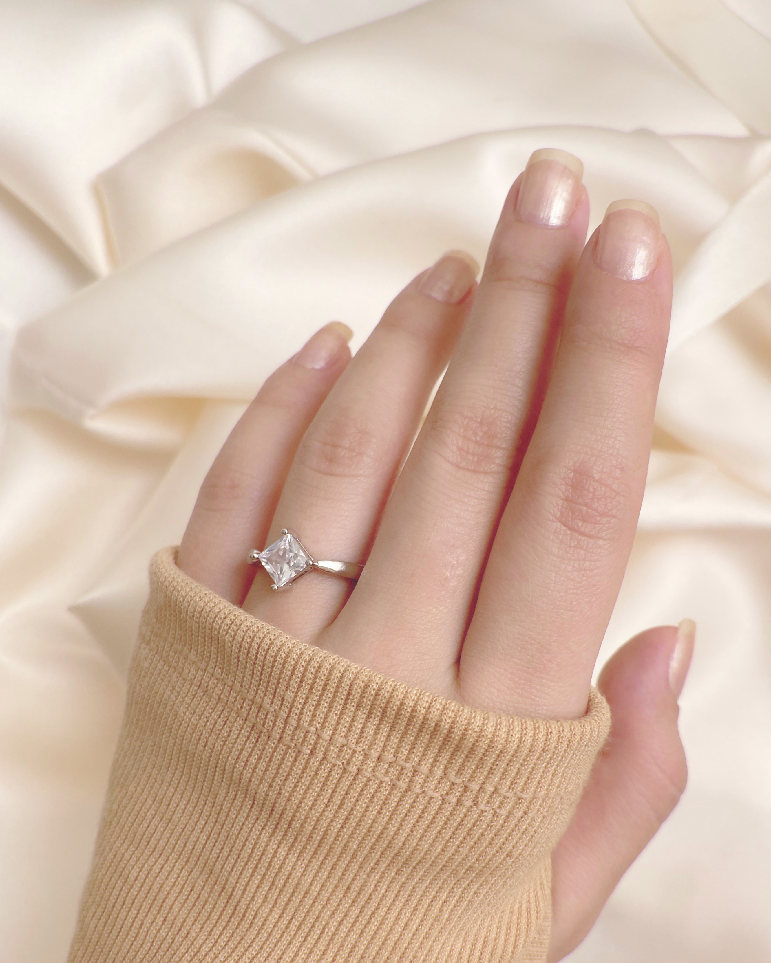 انگشتر تکنگین زنانه – نقرهای رنگ (Free Size)