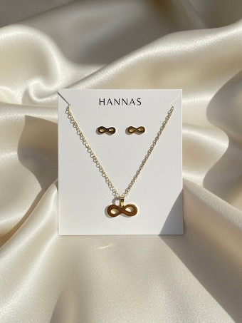 نیمست استیل دخترانه طرح بینهایت – رنگ ثابت طلایی | گردنبند + گوشواره میخ