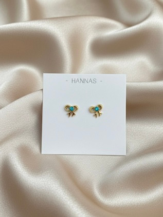 گوشواره ضد حساسیت سیلیکونی دخترانه - پاپیون طلایی نگین سبز زمردی